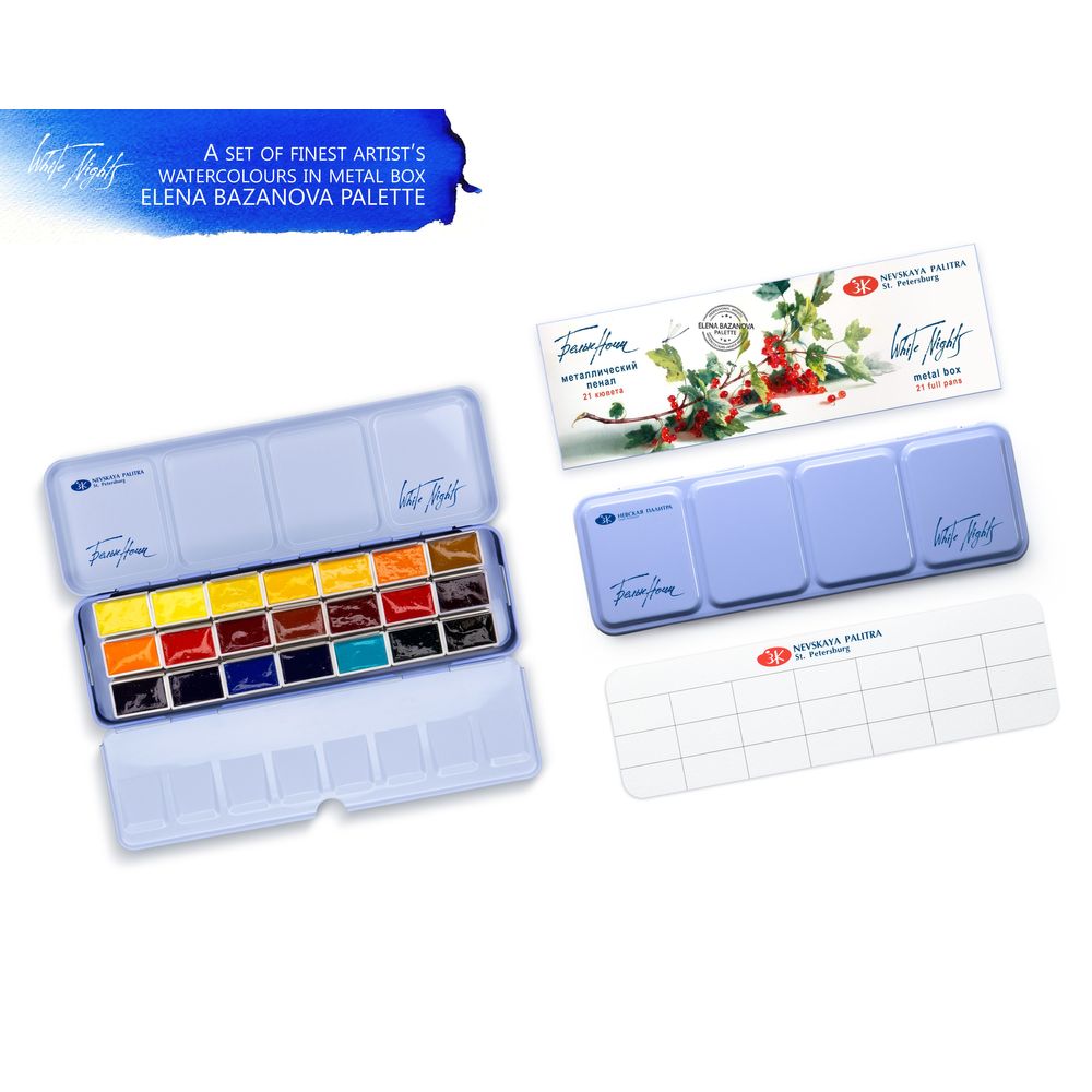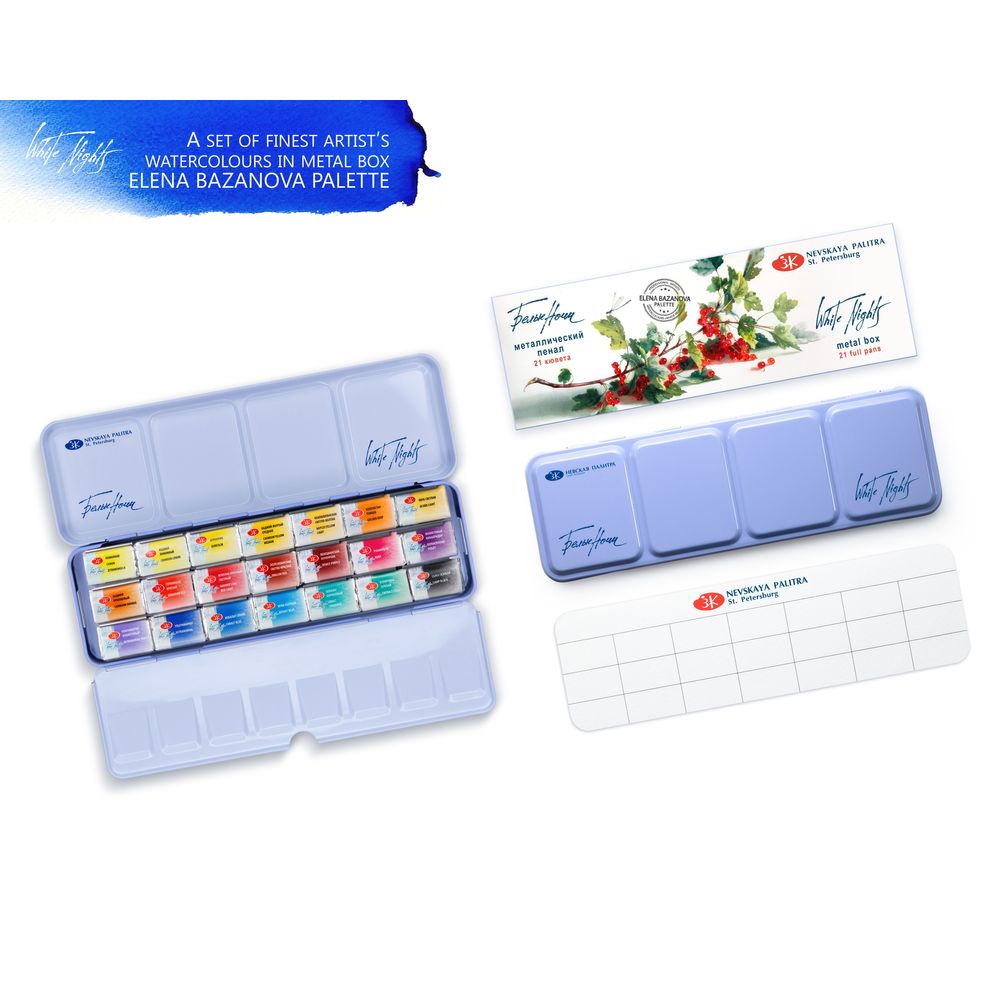 Kit 21 Tintas Aquarela White Nights Em Pastilha "Bazanova" Estojo Metal - 1443