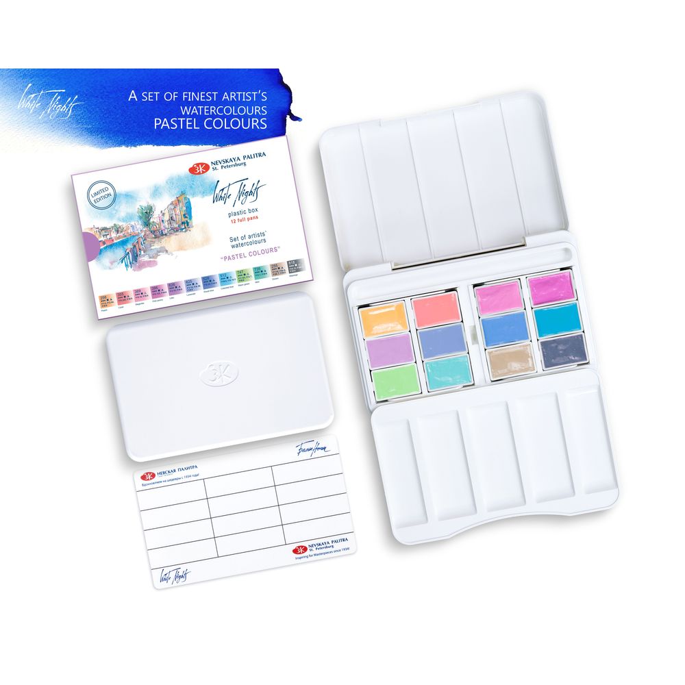 Kit 12 Tintas Aquarela White Nights Em Pastilha Cores Pasteis - 1875