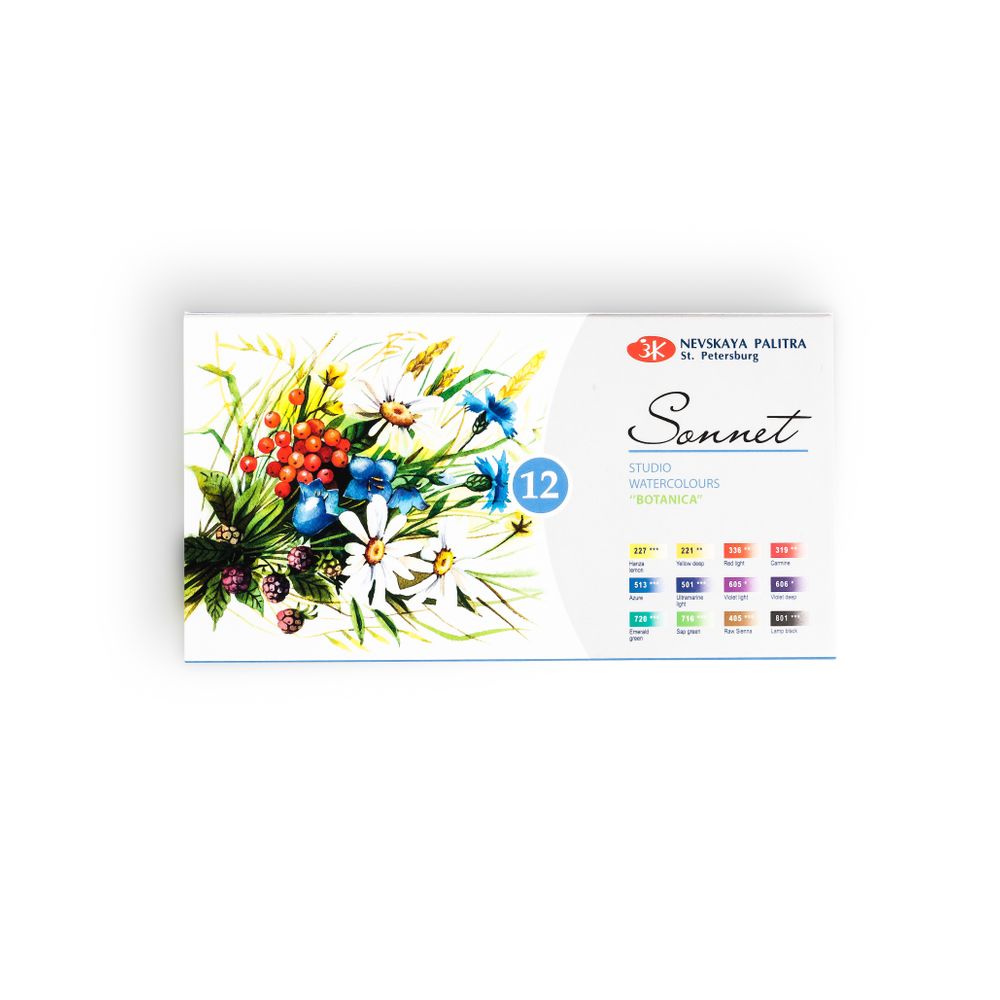 Kit De Aquarelas Em Pastilha Nevskaya Palitra Sonnet Botânica - 12 Cores - 1880