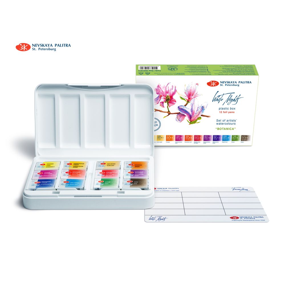 Kit 12 Tintas Aquarela White Nights Em Pastilha Botanica - 1874