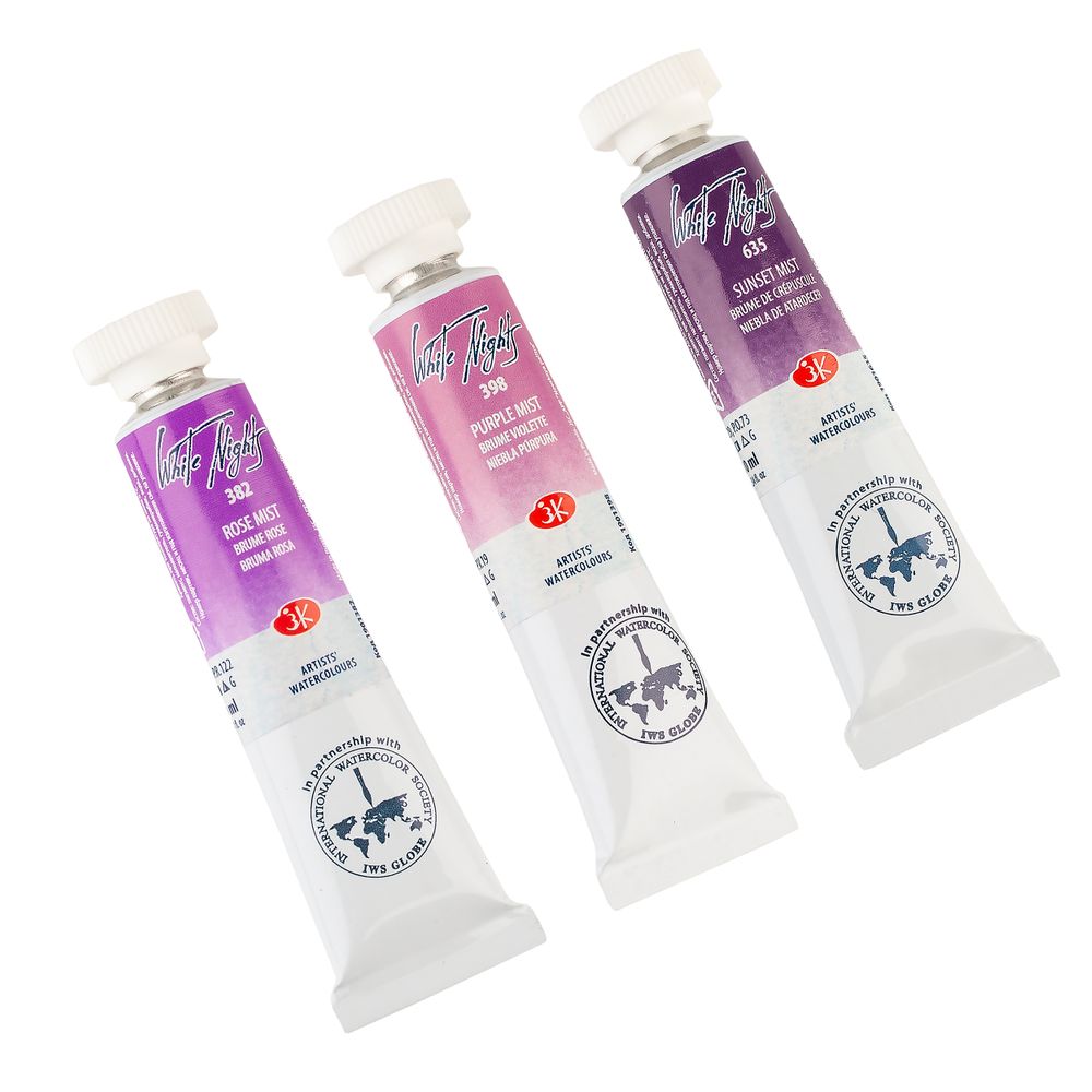 Kit 3 Tintas Aquarela White Nights Granuladas Em Tubo Tons Do Por Do Sol - 2532