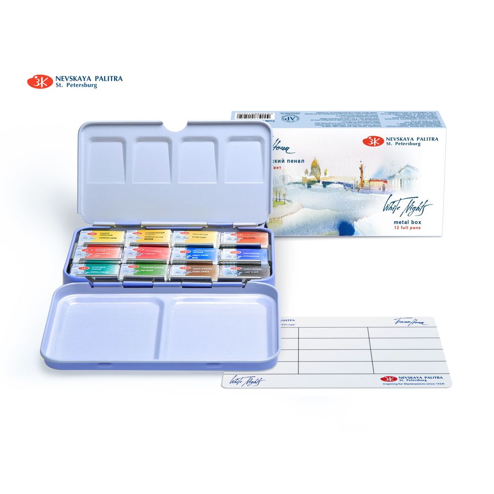 Kit 12 Tintas Aquarela White Nights Em Pastilha Estojo Metal - 1561