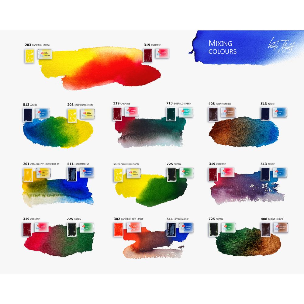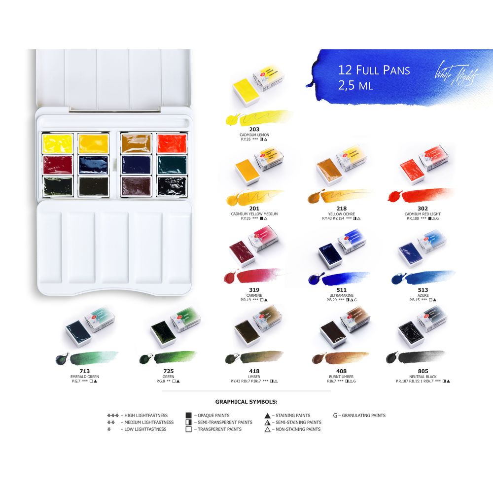 Kit 12 Tintas Aquarela White Nights Em Pastilha - 1585